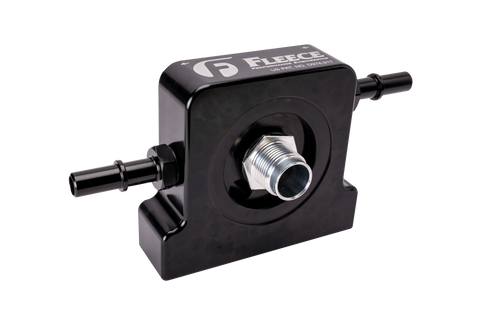 Our anodized billet aluminum fuel filter base retains the OE sandwich style heating element and includes quick disconnect fittings for an OE quality fit and finish. The new filter base installs in the same location as the stock cartridge filter base.