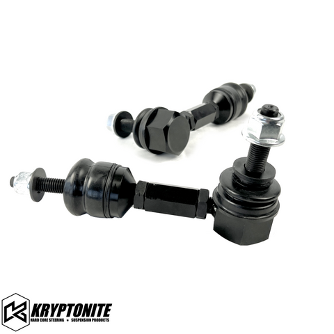 The Kryptonite Front Sway Bar End Links are designed for durability and precision fitment on heavy-duty Ram trucks. These end links measure 5.5" from center to mounting surface, providing optimal sway bar geometry for improved stability and handling.