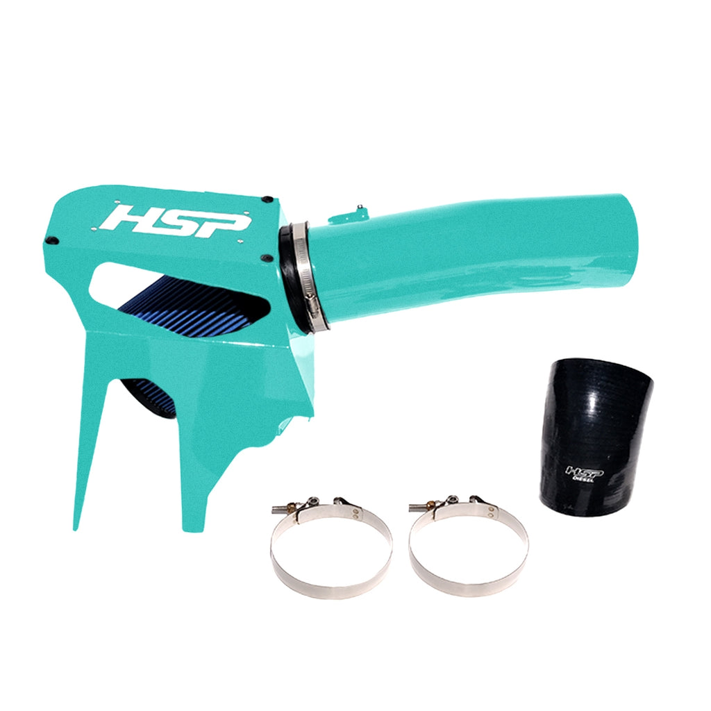 The HSP Diesel HSP Cold Air Intake produces average additional horsepower and torque on the dyno. To do this, we increased the size of the factory intake tube and smoother bends. This gives you an extremely consistent and free-flowing path that enables the HSP Cold Air Intake to outperform other intakes on the market.