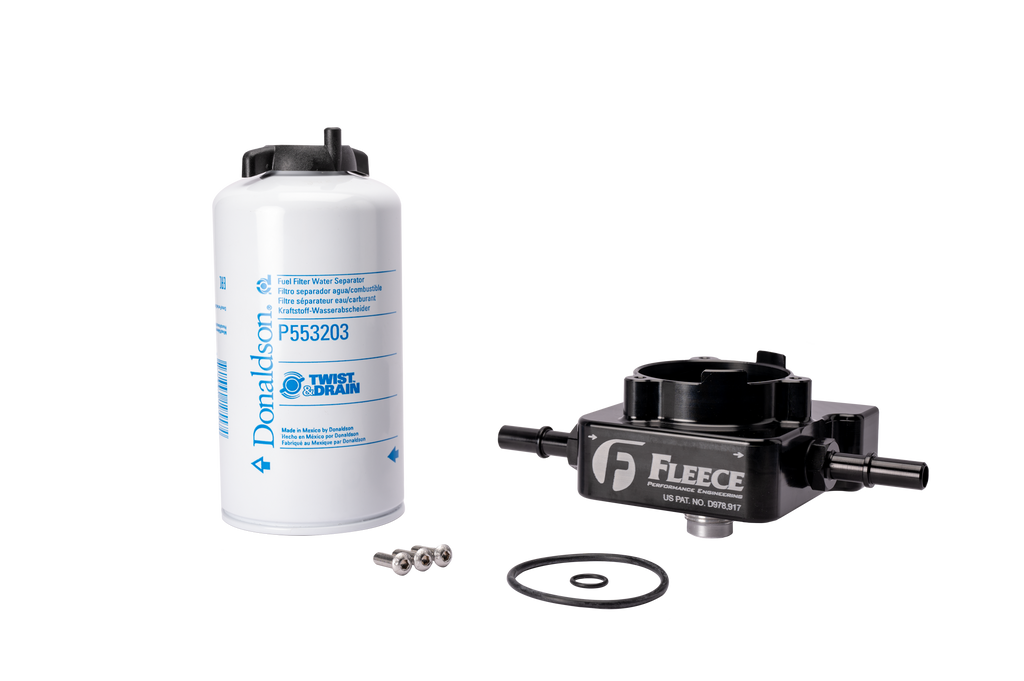 The Fleece Performance L5P fuel filter upgrade kit allows you to seamlessly change over from the stock cartridge style filter to a spin-on canister style filter. The canister filter provides for increased filter capacity and longer change intervals as well as expands your filter options.