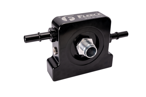 Our anodized billet aluminum fuel filter base retains the OE sandwich style heating element and includes quick disconnect fittings for an OE quality fit and finish. The new filter base installs in the same location as the stock cartridge filter base.
