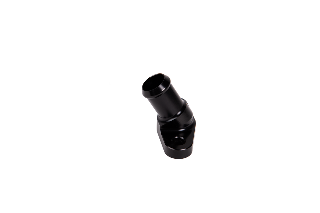 Our universal 45 degree turbo drain nipple with integrated O-ring seal is designed to fit 7/8 Inch ID Hose. Made from billet aluminum and anodized in black.