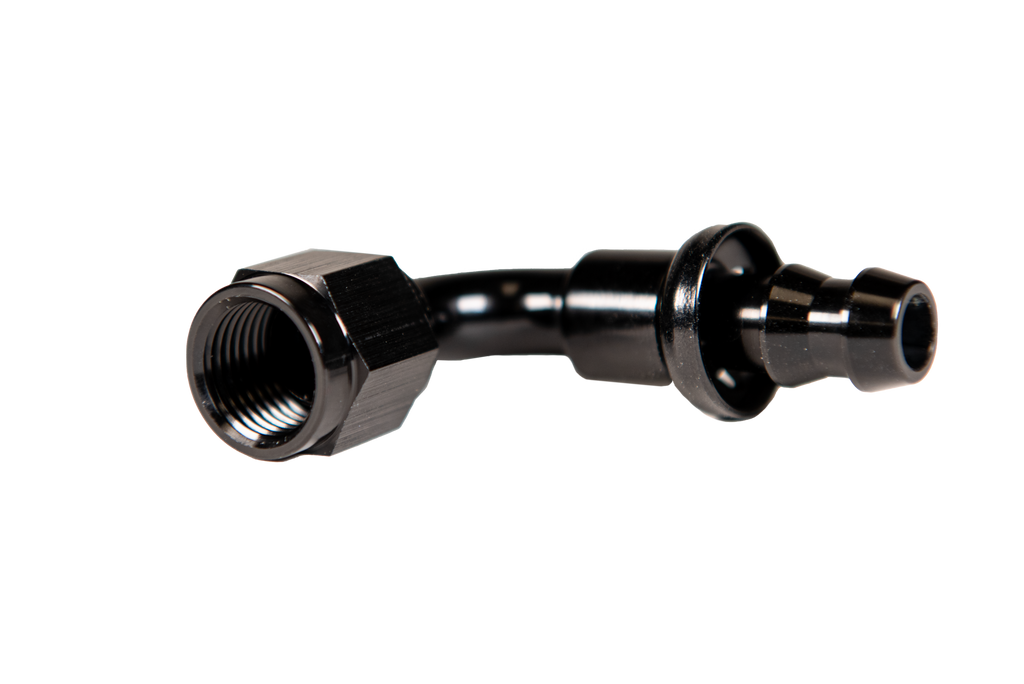 -8 90 Degree to Hose Barb Black.